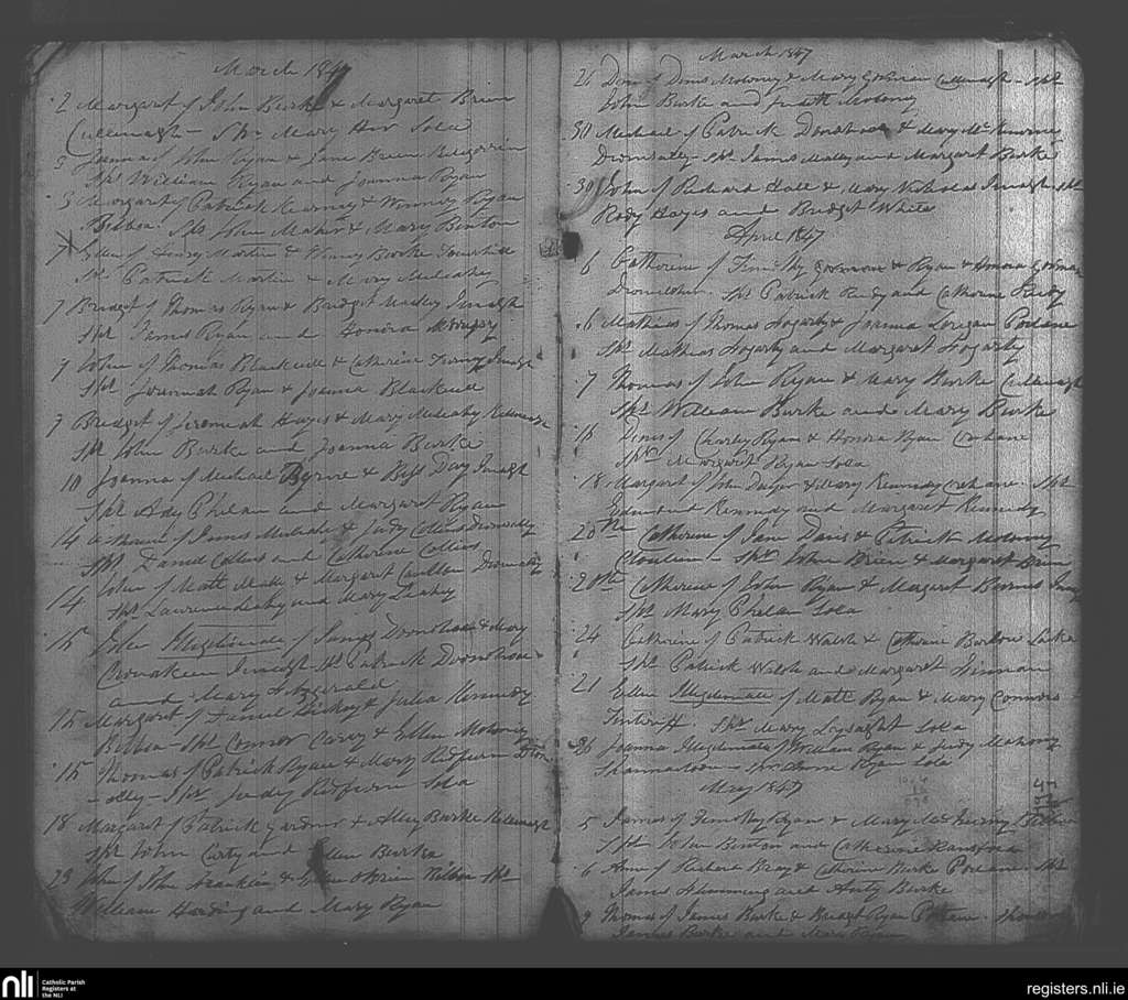 Cappamore; County of Limerick; Diocese of Cashel and Emly. Baptisms, Mar. 1847 to May 1847