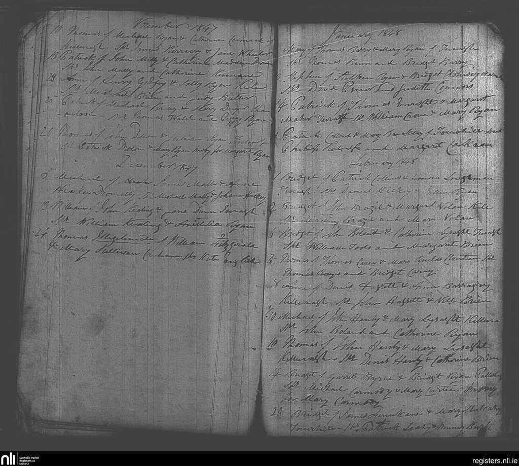 Cappamore; County of Limerick; Diocese of Cashel and Emly. Baptisms, Nov. 1847 to Feb. 1848