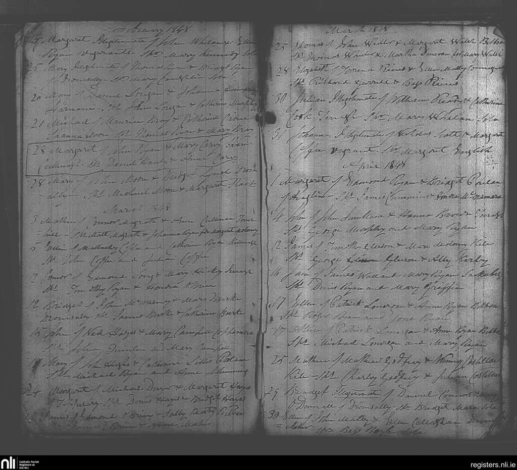 Cappamore; County of Limerick; Diocese of Cashel and Emly. Baptisms, Feb. 1848 to Apr. 1848
