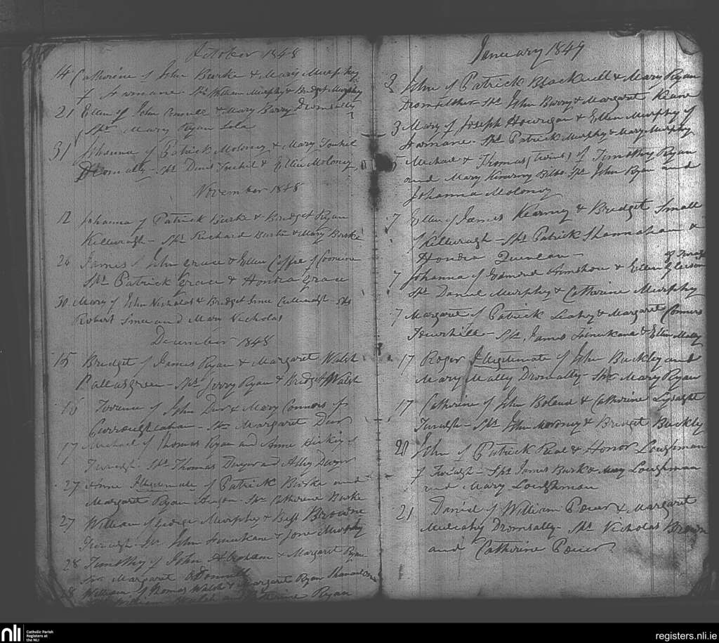 Cappamore; County of Limerick; Diocese of Cashel and Emly. Baptisms, Oct. 1848 to Jan. 1849