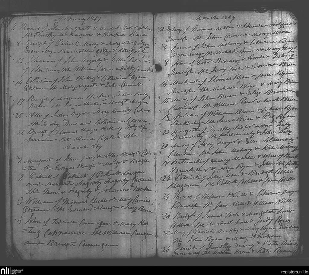 Cappamore; County of Limerick; Diocese of Cashel and Emly. Baptisms, Feb. 1849 to Mar. 1849