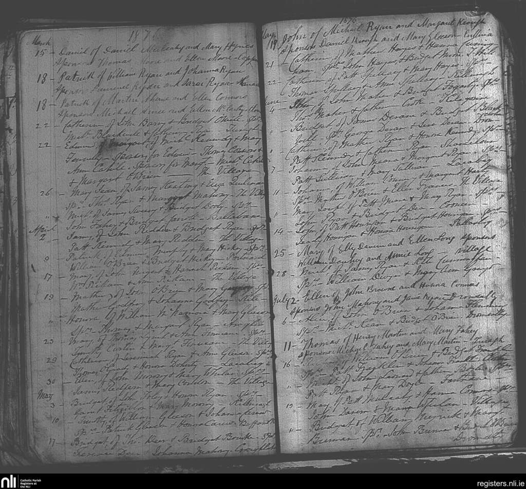 Cappamore; County of Limerick; Diocese of Cashel and Emly. Baptisms, Mar. 1876 to July 1876