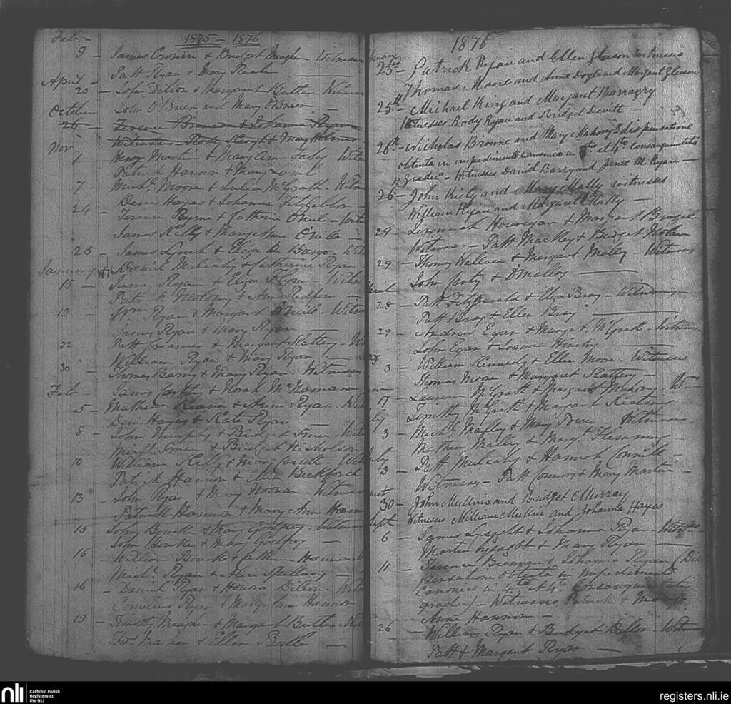 Cappamore; County of Limerick; Diocese of Cashel and Emly. Marriages, Feb. 1875 to Sep. 1876