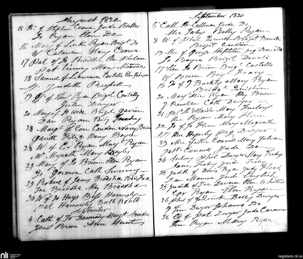 Cappawhite; County of Tipperary; Diocese of Cashel and Emly. Baptisms, Aug. 1820 to Sep. 1820