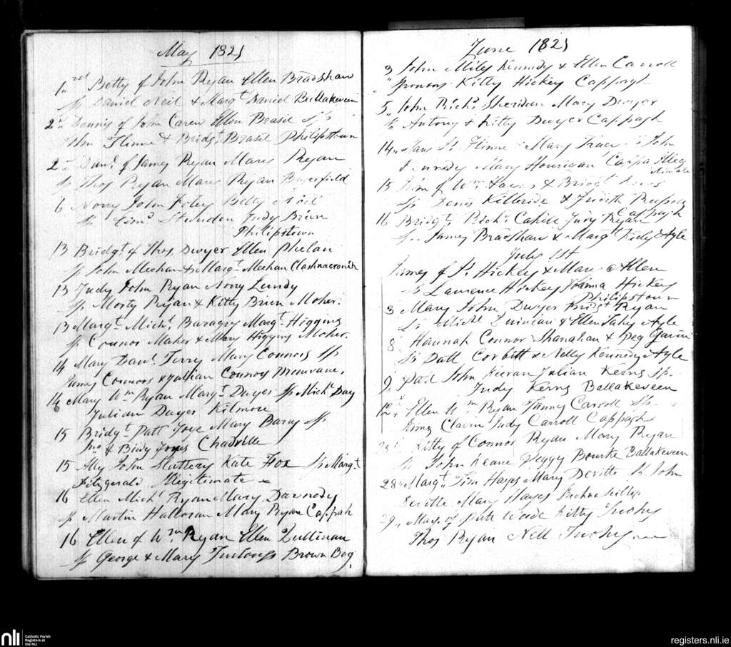 Cappawhite; County of Tipperary; Diocese of Cashel and Emly. Baptisms, May 1821 to July 1821