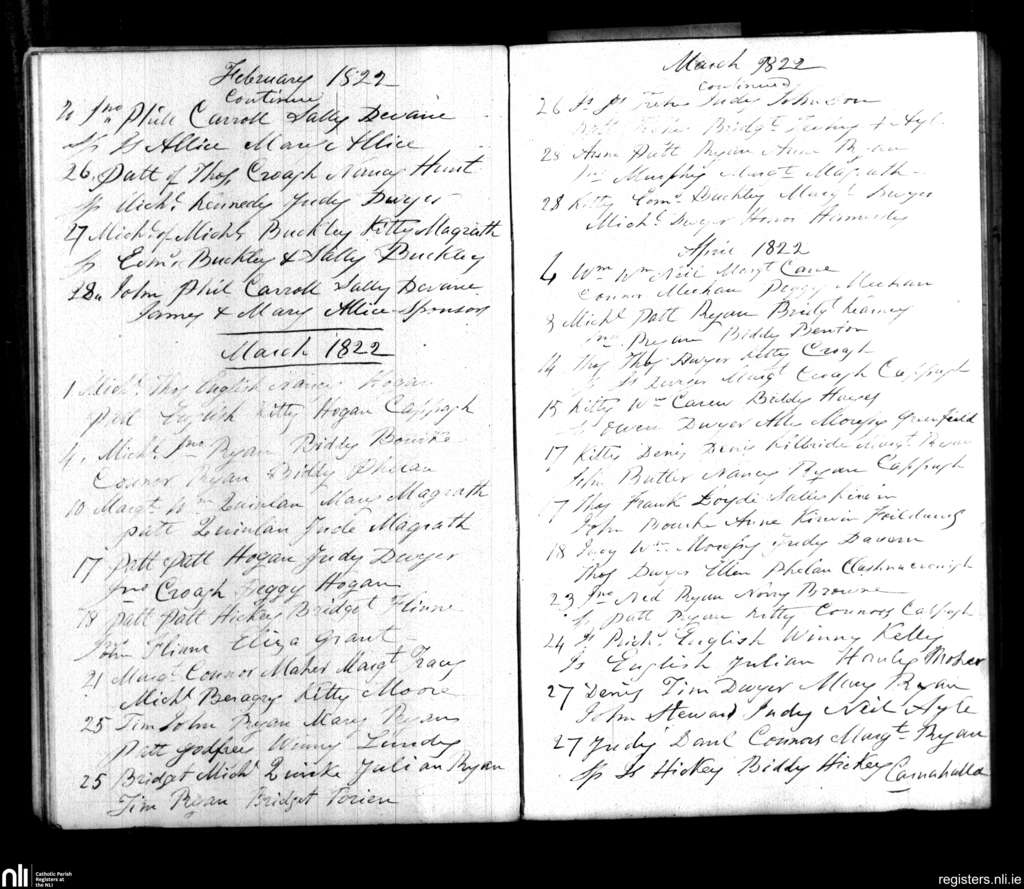 Cappawhite; County of Tipperary; Diocese of Cashel and Emly. Baptisms, Feb. 1822 to Apr. 1822