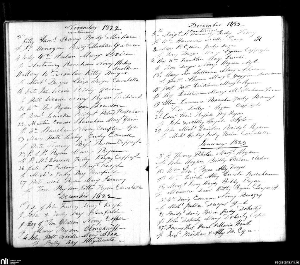 Cappawhite; County of Tipperary; Diocese of Cashel and Emly. Baptisms, Nov. 1822 to Jan. 1823