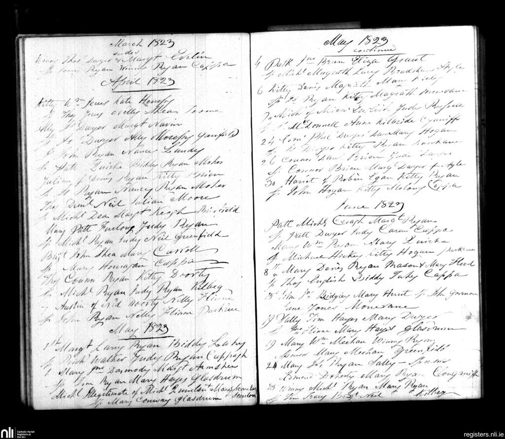 Cappawhite; County of Tipperary; Diocese of Cashel and Emly. Baptisms, Mar. 1823 to June 1823