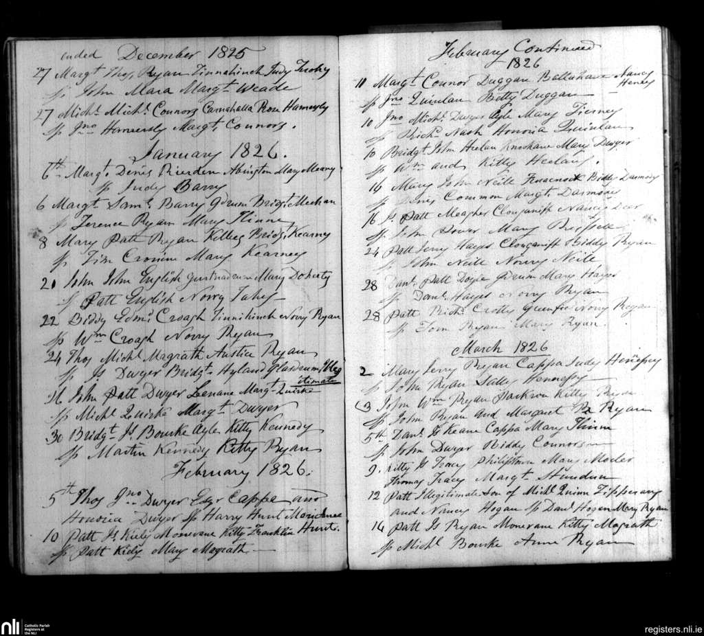 Cappawhite; County of Tipperary; Diocese of Cashel and Emly. Baptisms, Dec. 1825 to Mar. 1826