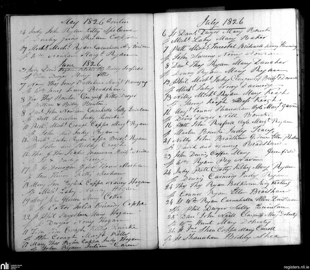 Cappawhite; County of Tipperary; Diocese of Cashel and Emly. Baptisms, May 1826 to July 1826
