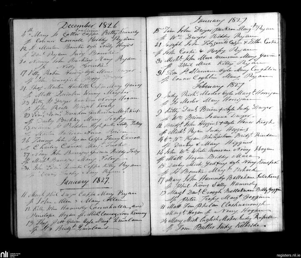 Cappawhite; County of Tipperary; Diocese of Cashel and Emly. Baptisms, Dec. 1826 to Feb. 1827