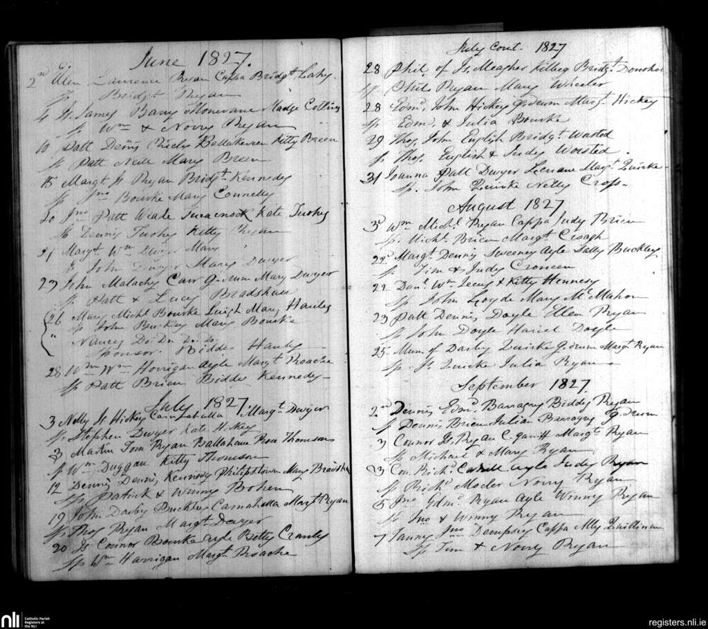 Cappawhite; County of Tipperary; Diocese of Cashel and Emly. Baptisms, June 1827 to Sep. 1827