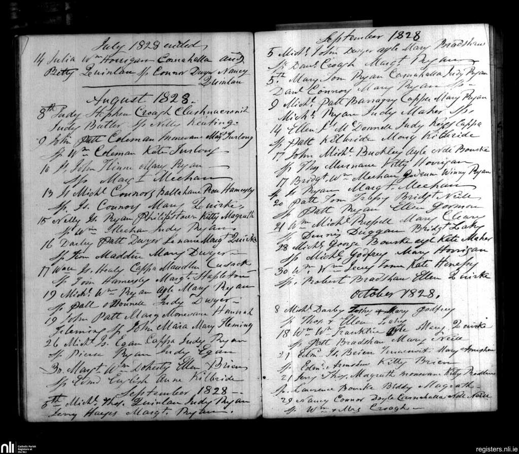 Cappawhite; County of Tipperary; Diocese of Cashel and Emly. Baptisms, July 1828 to Oct. 1828