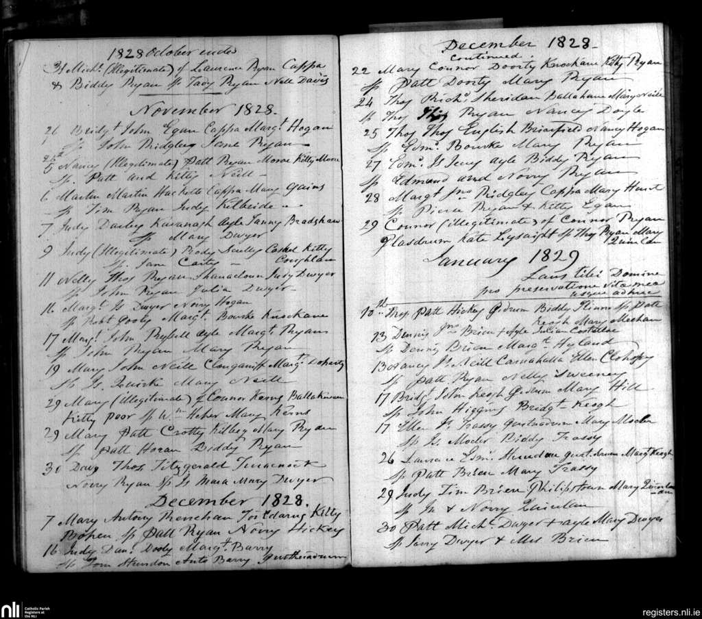 Cappawhite; County of Tipperary; Diocese of Cashel and Emly. Baptisms, Oct. 1828 to Jan. 1829