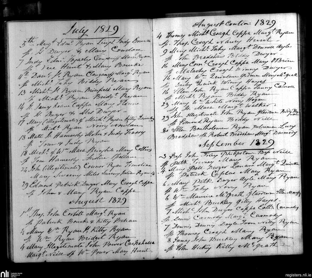 Cappawhite; County of Tipperary; Diocese of Cashel and Emly. Baptisms, July 1829 to Sep. 1829