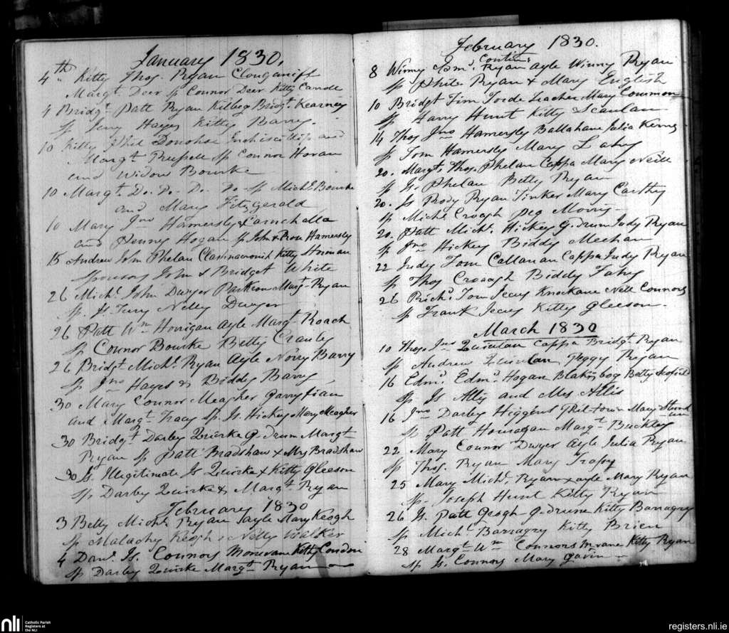 Cappawhite; County of Tipperary; Diocese of Cashel and Emly. Baptisms, Jan. 1830 to Mar. 1830