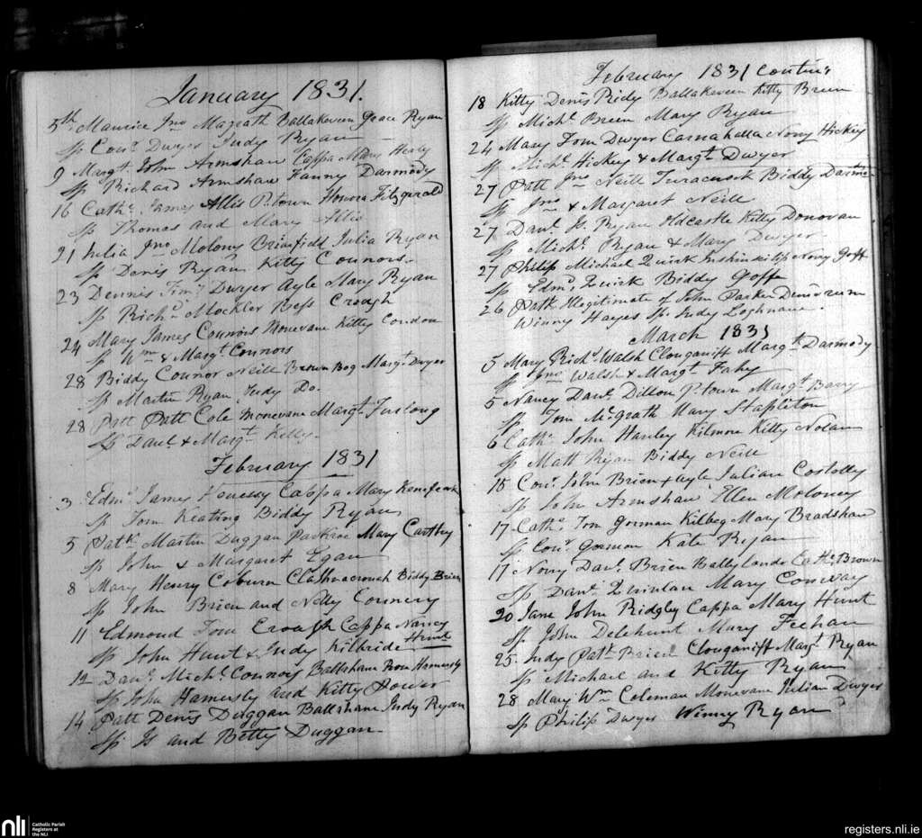 Cappawhite; County of Tipperary; Diocese of Cashel and Emly. Baptisms, Jan. 1831 to Mar. 1831