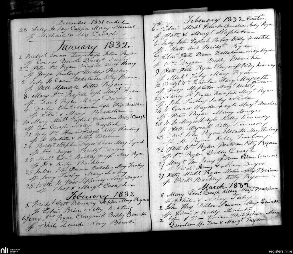 Cappawhite; County of Tipperary; Diocese of Cashel and Emly. Baptisms, Dec. 1831 to Mar. 1832