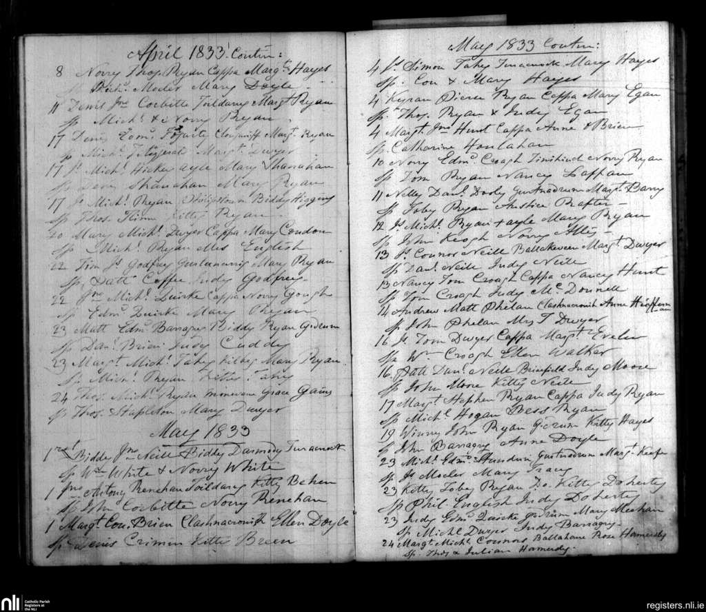 Cappawhite; County of Tipperary; Diocese of Cashel and Emly. Baptisms, Apr. 1833 to May 1833