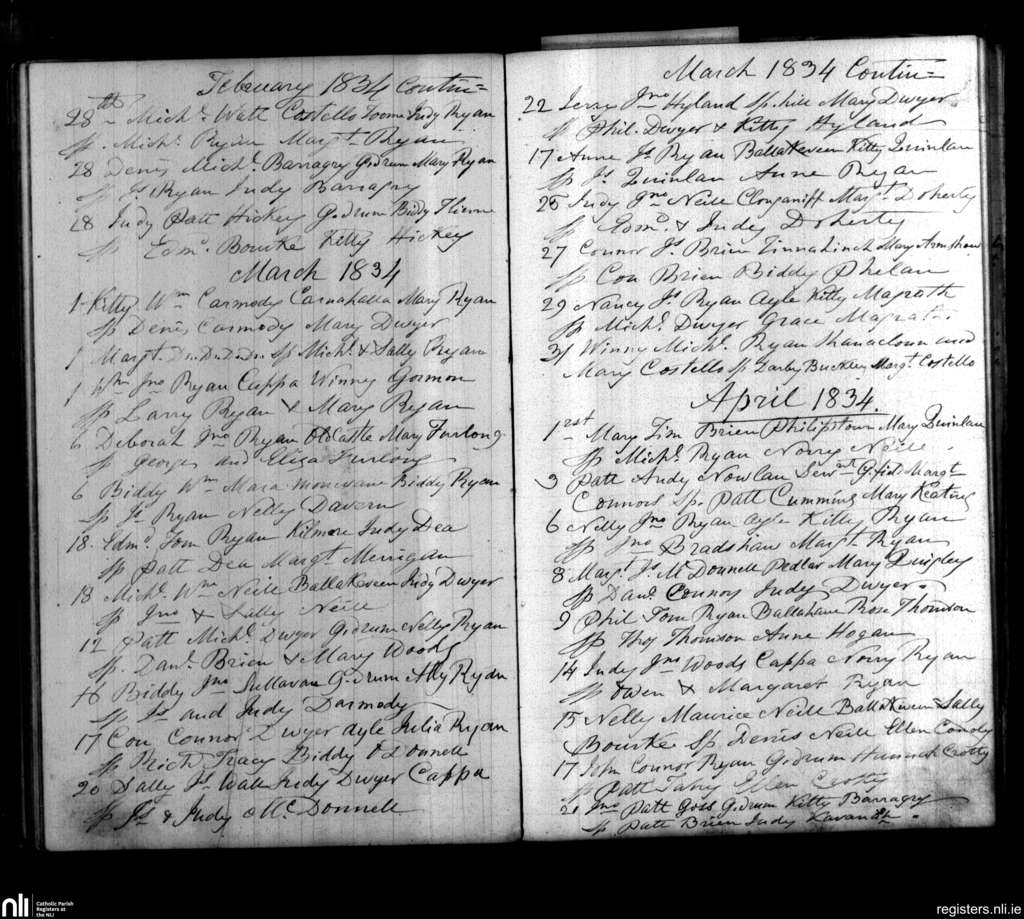 Cappawhite; County of Tipperary; Diocese of Cashel and Emly. Baptisms, Feb. 1834 to Apr. 1834
