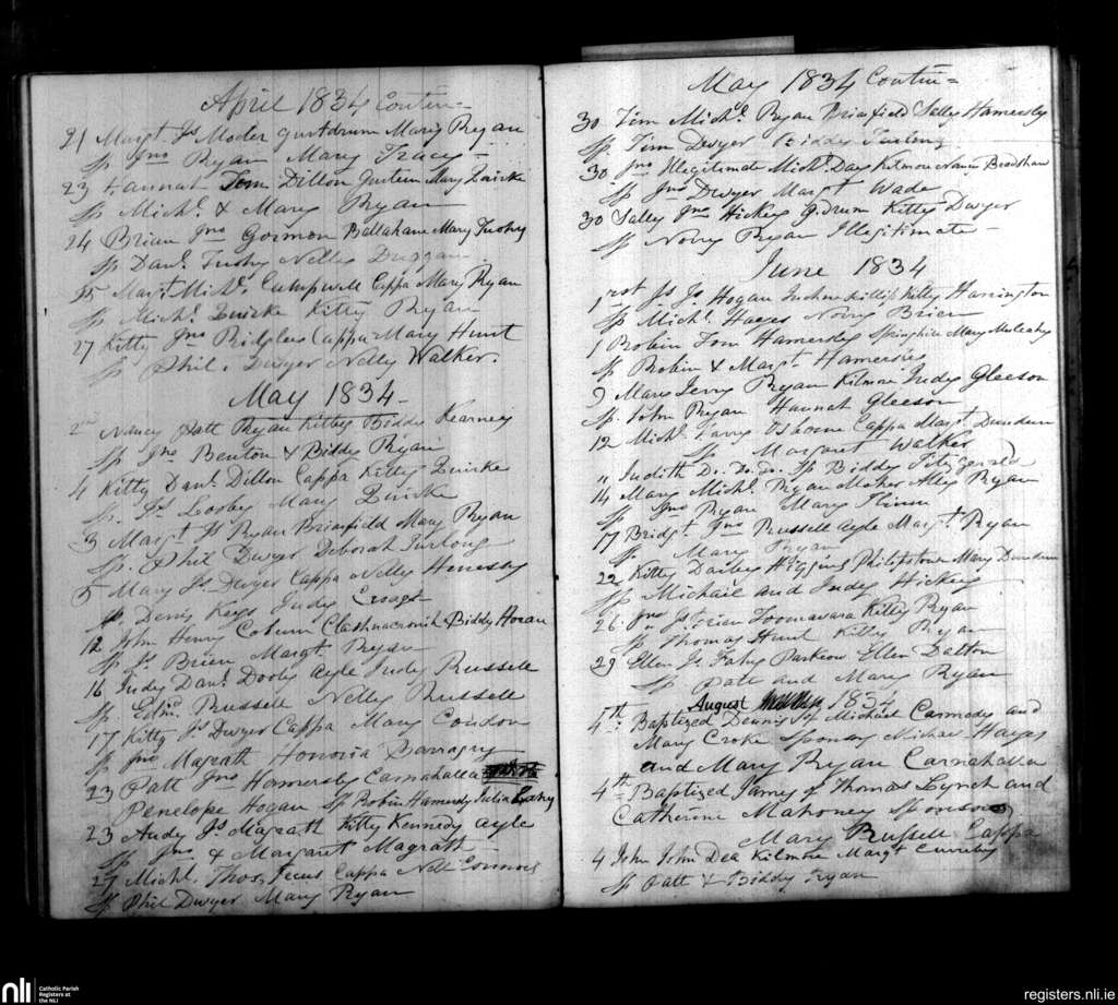 Cappawhite; County of Tipperary; Diocese of Cashel and Emly. Baptisms, Apr. 1834 to Aug. 1834