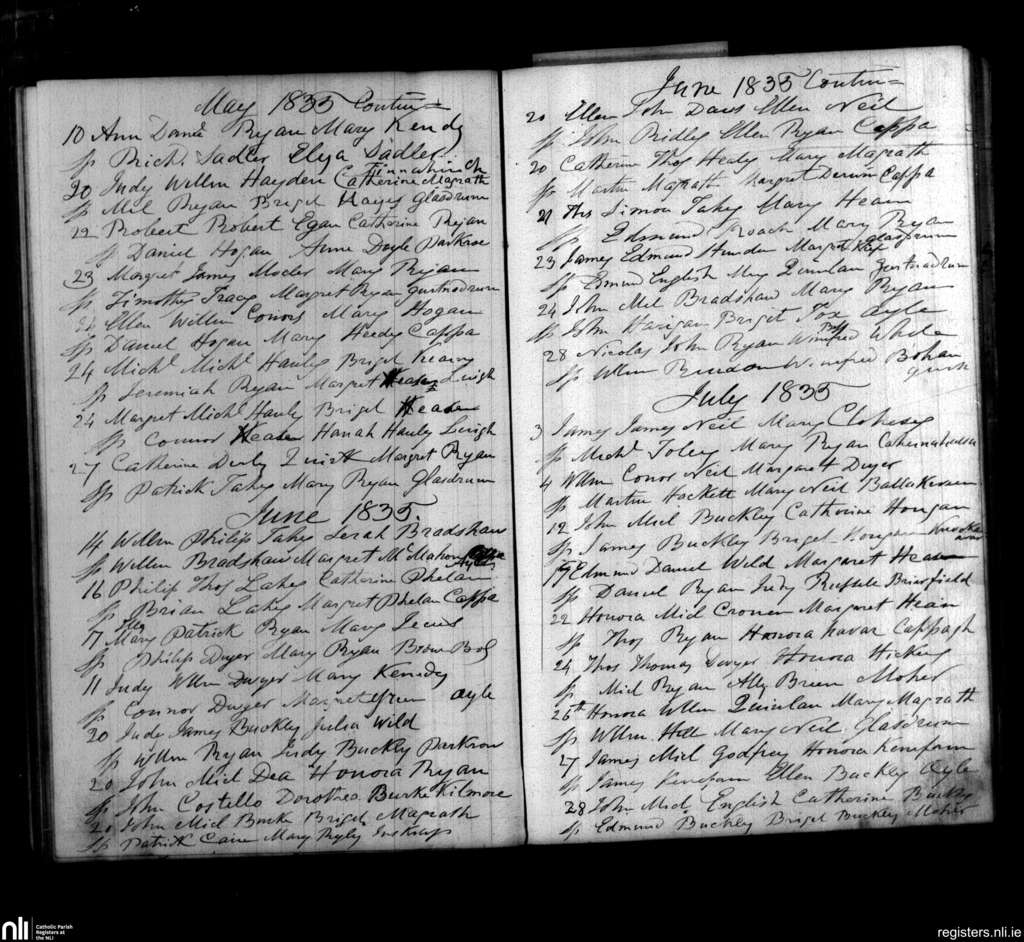 Cappawhite; County of Tipperary; Diocese of Cashel and Emly. Baptisms, May 1835 to July 1835