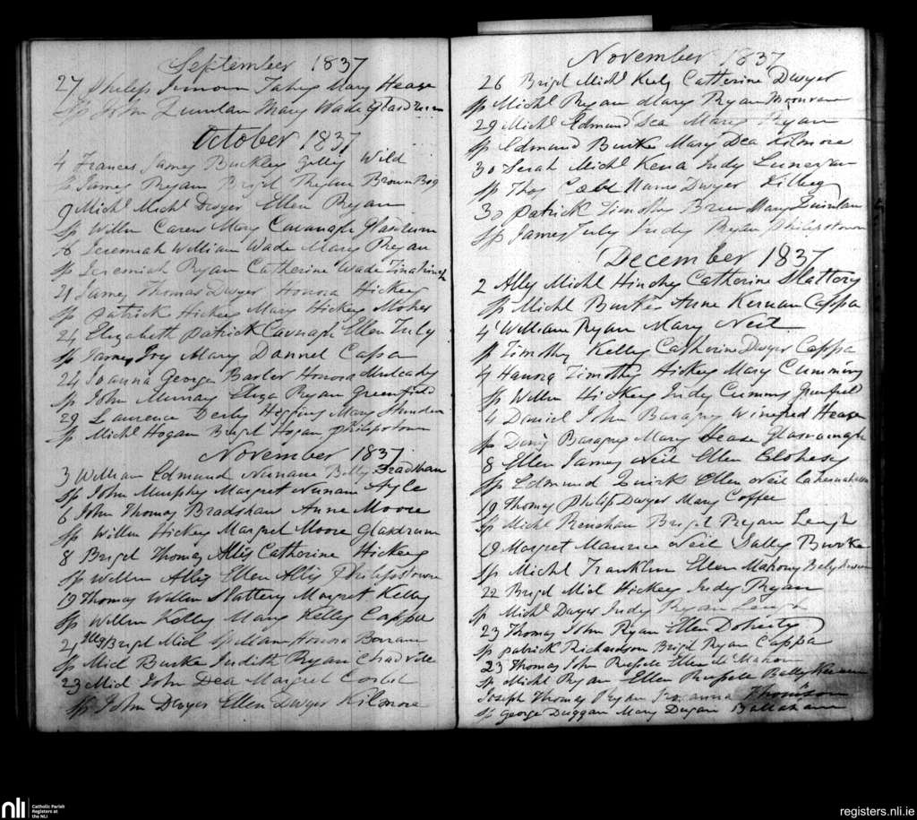 Cappawhite; County of Tipperary; Diocese of Cashel and Emly. Baptisms, Sep. 1837 to Dec. 1837