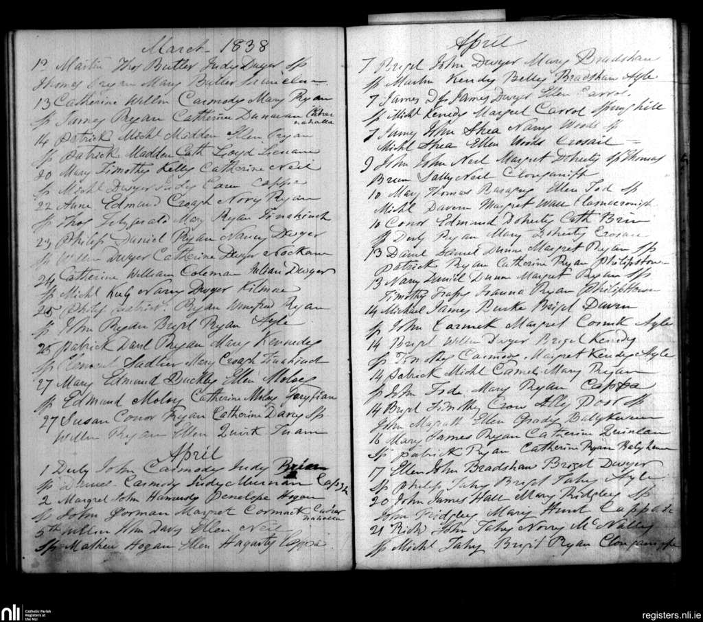 Cappawhite; County of Tipperary; Diocese of Cashel and Emly. Baptisms, Mar. 1838 to Apr. 1838