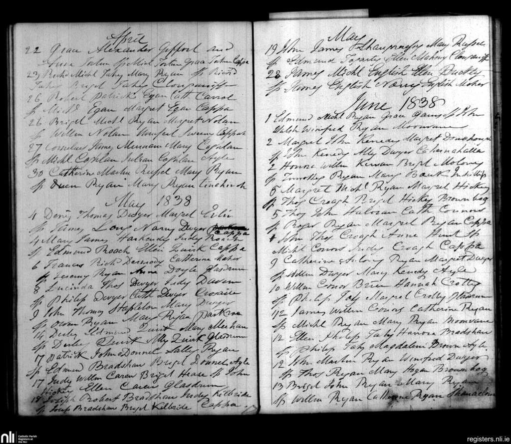 Cappawhite; County of Tipperary; Diocese of Cashel and Emly. Baptisms, Apr. 1838 to June 1838