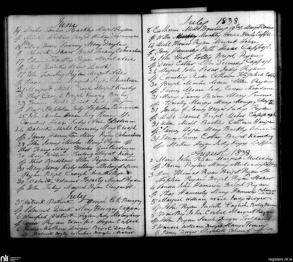 Cappawhite; County of Tipperary; Diocese of Cashel and Emly. Baptisms, June 1838 to Aug. 1838