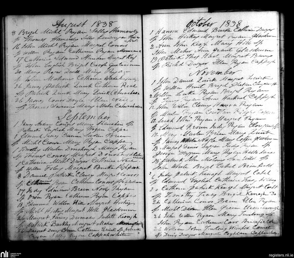 Cappawhite; County of Tipperary; Diocese of Cashel and Emly. Baptisms, Aug. 1838 to Nov. 1838