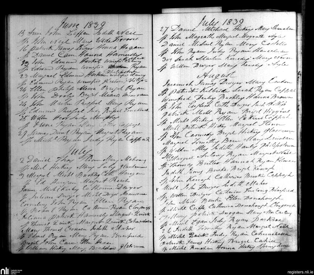 Cappawhite; County of Tipperary; Diocese of Cashel and Emly. Baptisms, June 1839 to Aug. 1839
