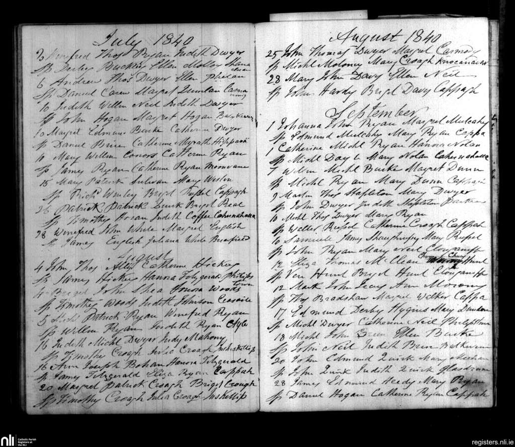 Cappawhite; County of Tipperary; Diocese of Cashel and Emly. Baptisms, July 1840 to Sep. 1840