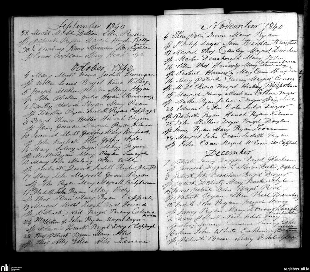 Cappawhite; County of Tipperary; Diocese of Cashel and Emly. Baptisms, Sep. 1840 to Dec. 1840