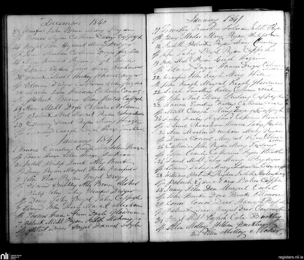 Cappawhite; County of Tipperary; Diocese of Cashel and Emly. Baptisms, Dec. 1840 to Jan. 1841