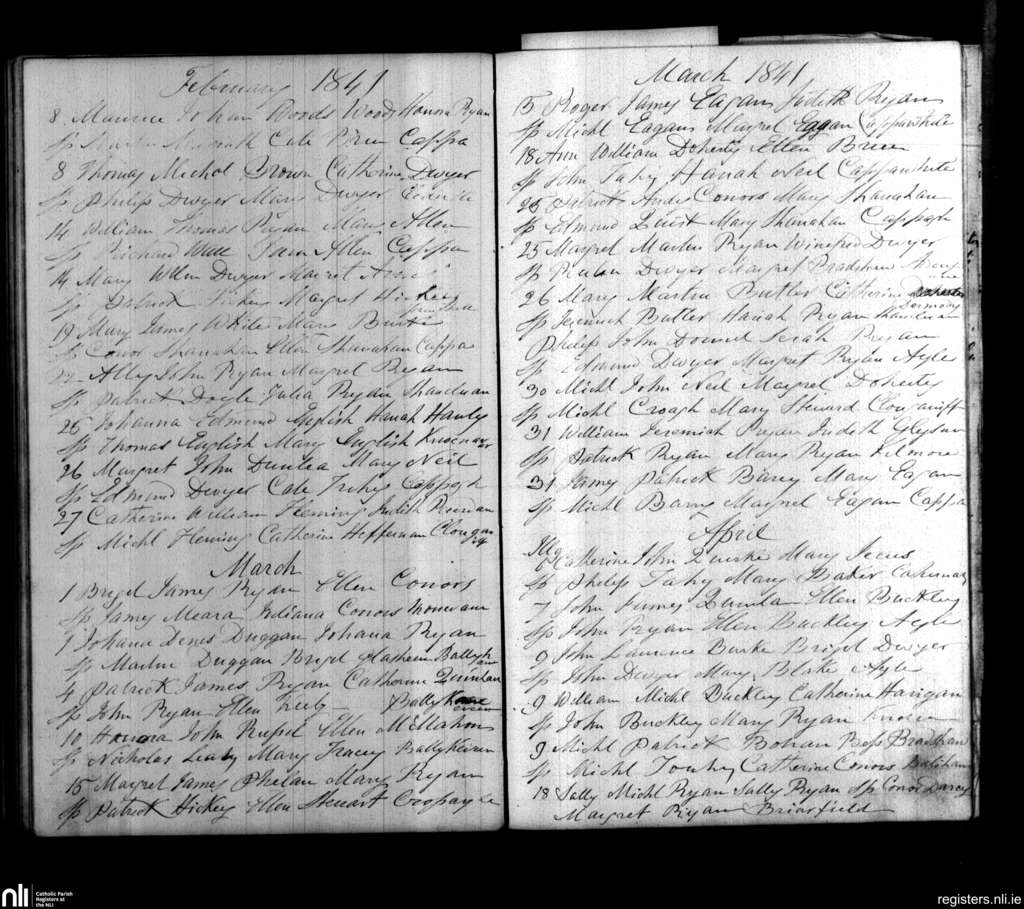 Cappawhite; County of Tipperary; Diocese of Cashel and Emly. Baptisms, Feb. 1841 to Apr. 1841