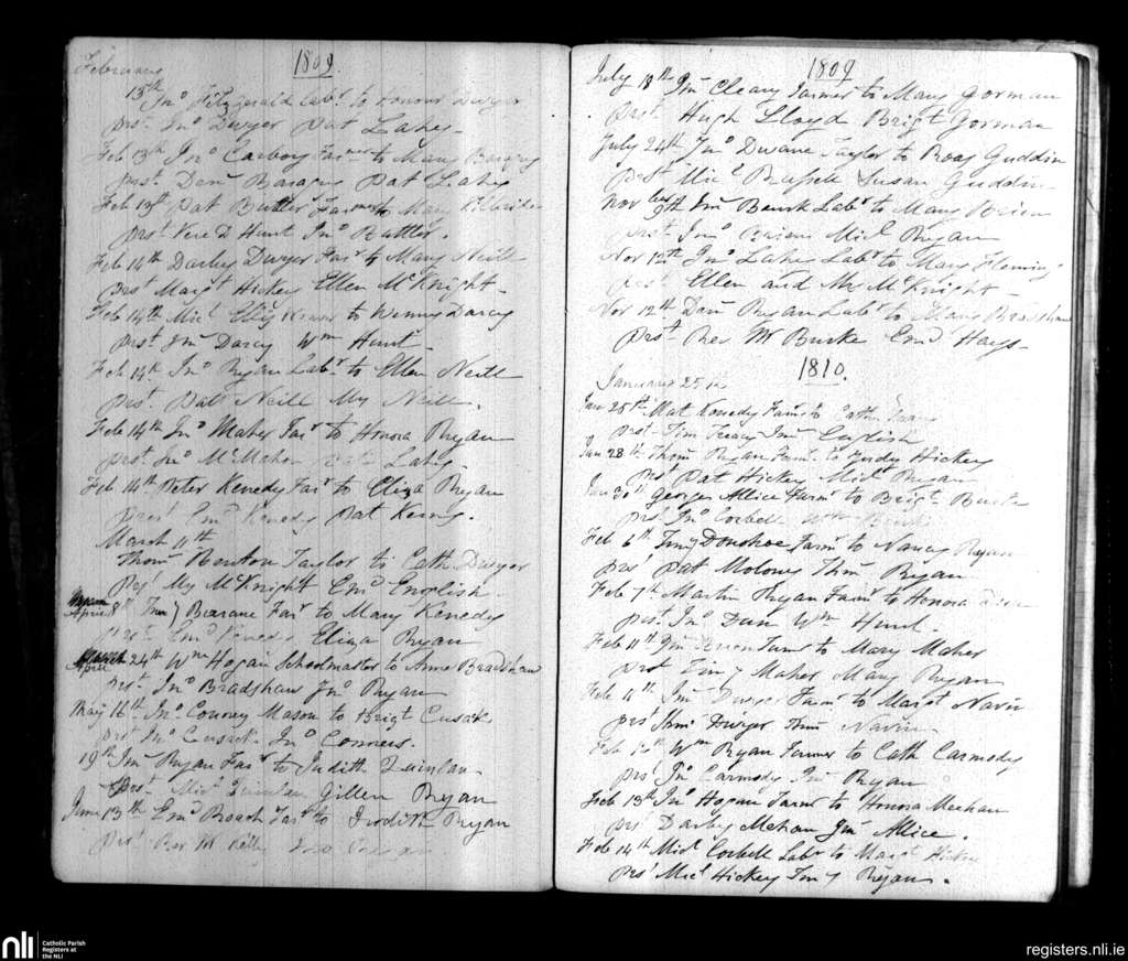 Cappawhite; County of Tipperary; Diocese of Cashel and Emly. Marriages, Feb. 1809 to Feb. 1810