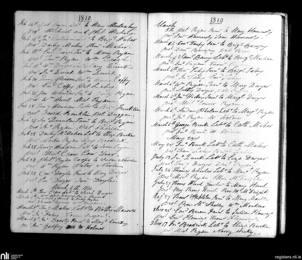 Cappawhite; County of Tipperary; Diocese of Cashel and Emly. Marriages, Feb. 1810 to Nov. 1810