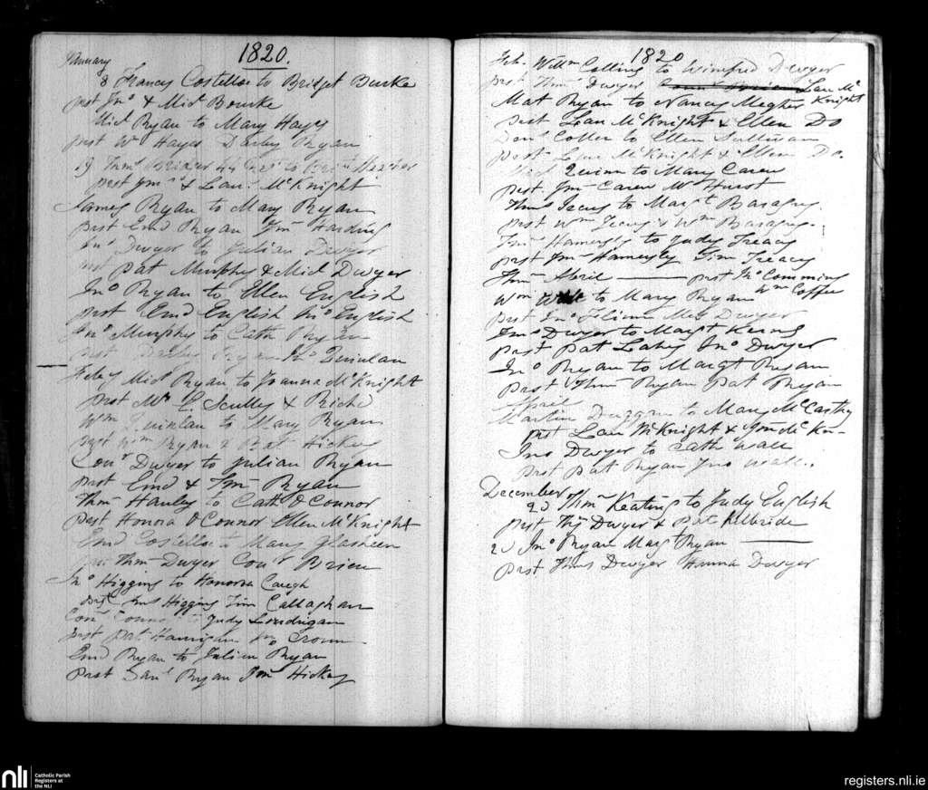 Cappawhite; County of Tipperary; Diocese of Cashel and Emly. Marriages, Jan. 1820 to Dec. 1820