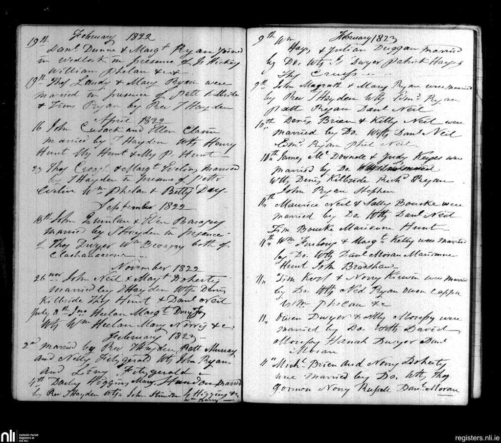 Cappawhite; County of Tipperary; Diocese of Cashel and Emly. Marriages, Feb. 1822 to Feb. 1823