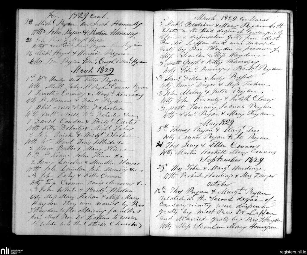Cappawhite; County of Tipperary; Diocese of Cashel and Emly. Marriages, Feb. 1829 to Oct. 1829