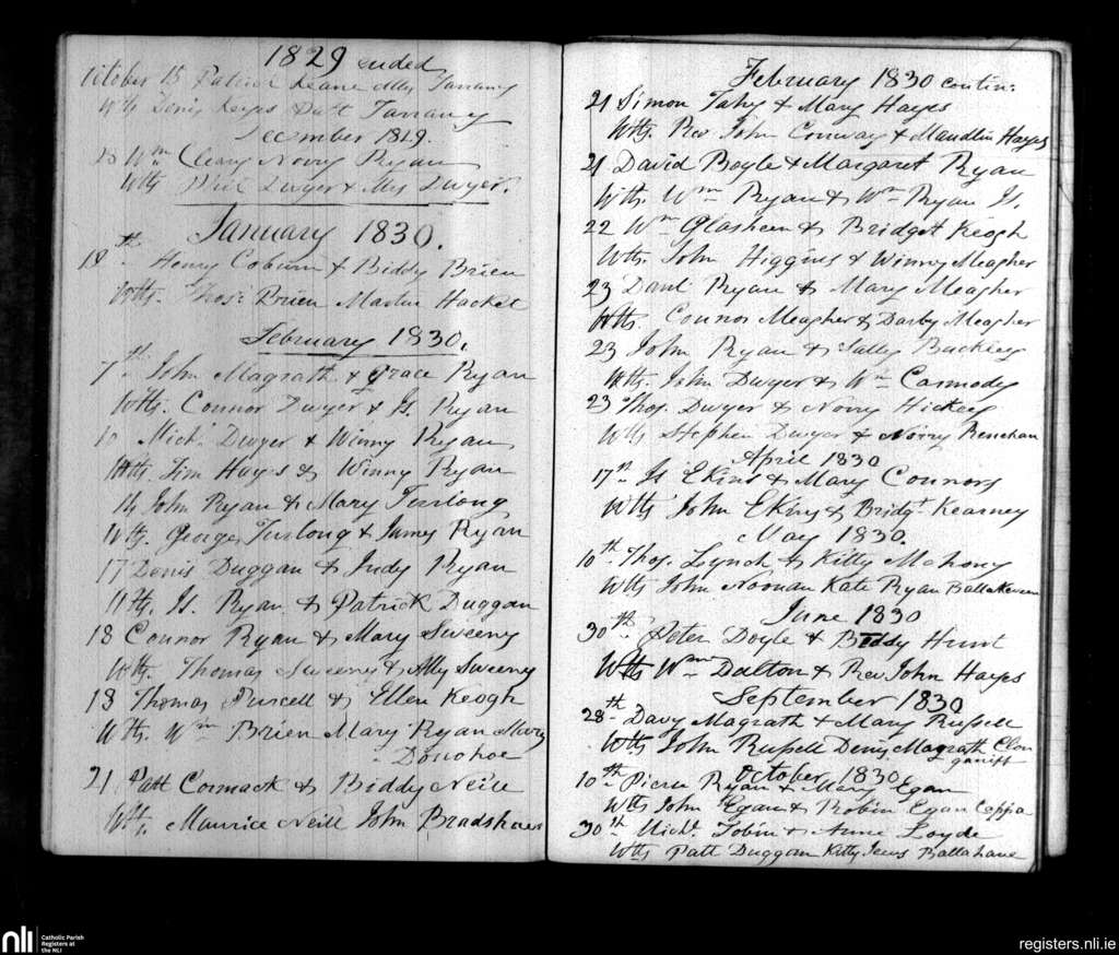 Cappawhite; County of Tipperary; Diocese of Cashel and Emly. Marriages, Oct. 1829 to Oct. 1830