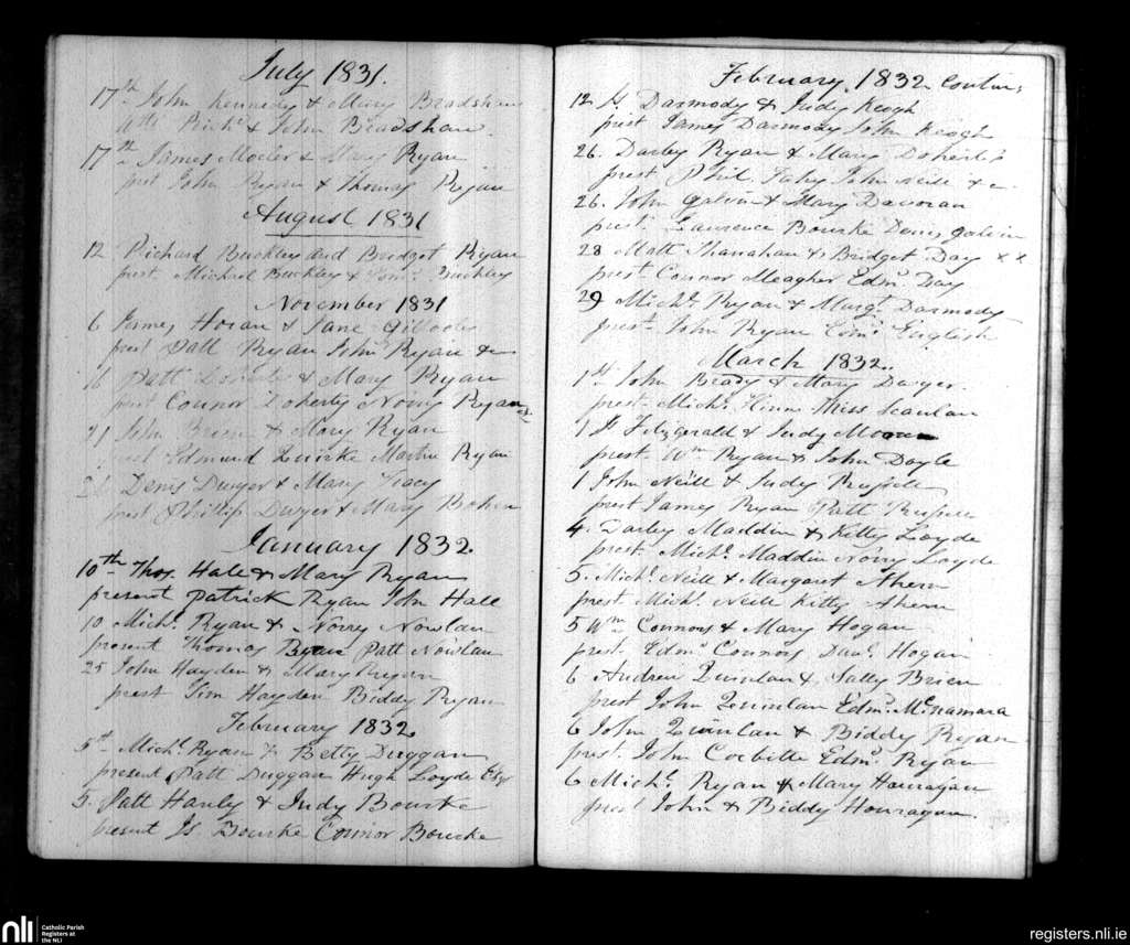 Cappawhite; County of Tipperary; Diocese of Cashel and Emly. Marriages, July 1831 to Mar. 1832