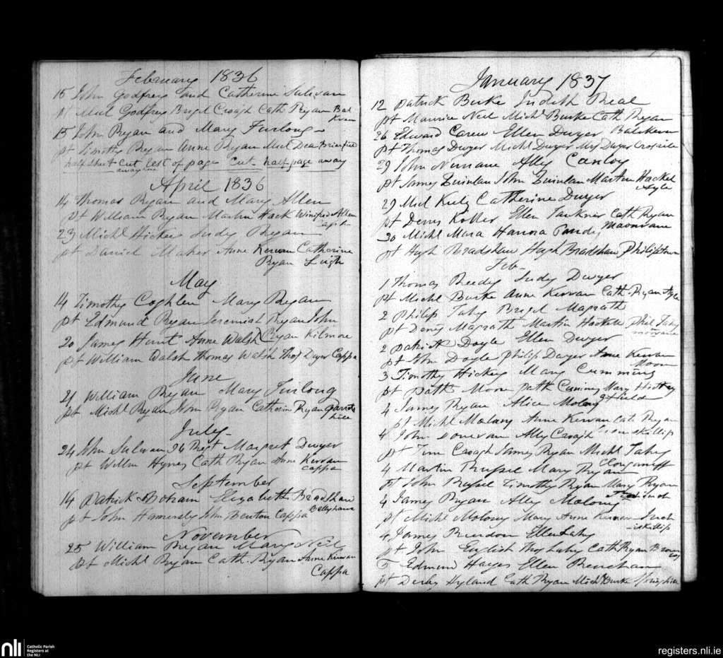 Cappawhite; County of Tipperary; Diocese of Cashel and Emly. Marriages, Feb. 1836 to Feb. 1837