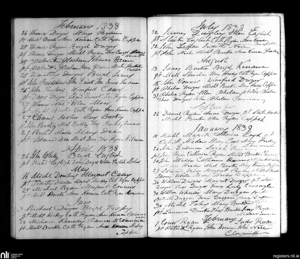 Cappawhite; County of Tipperary; Diocese of Cashel and Emly. Marriages, Feb. 1838 to Feb. 1839
