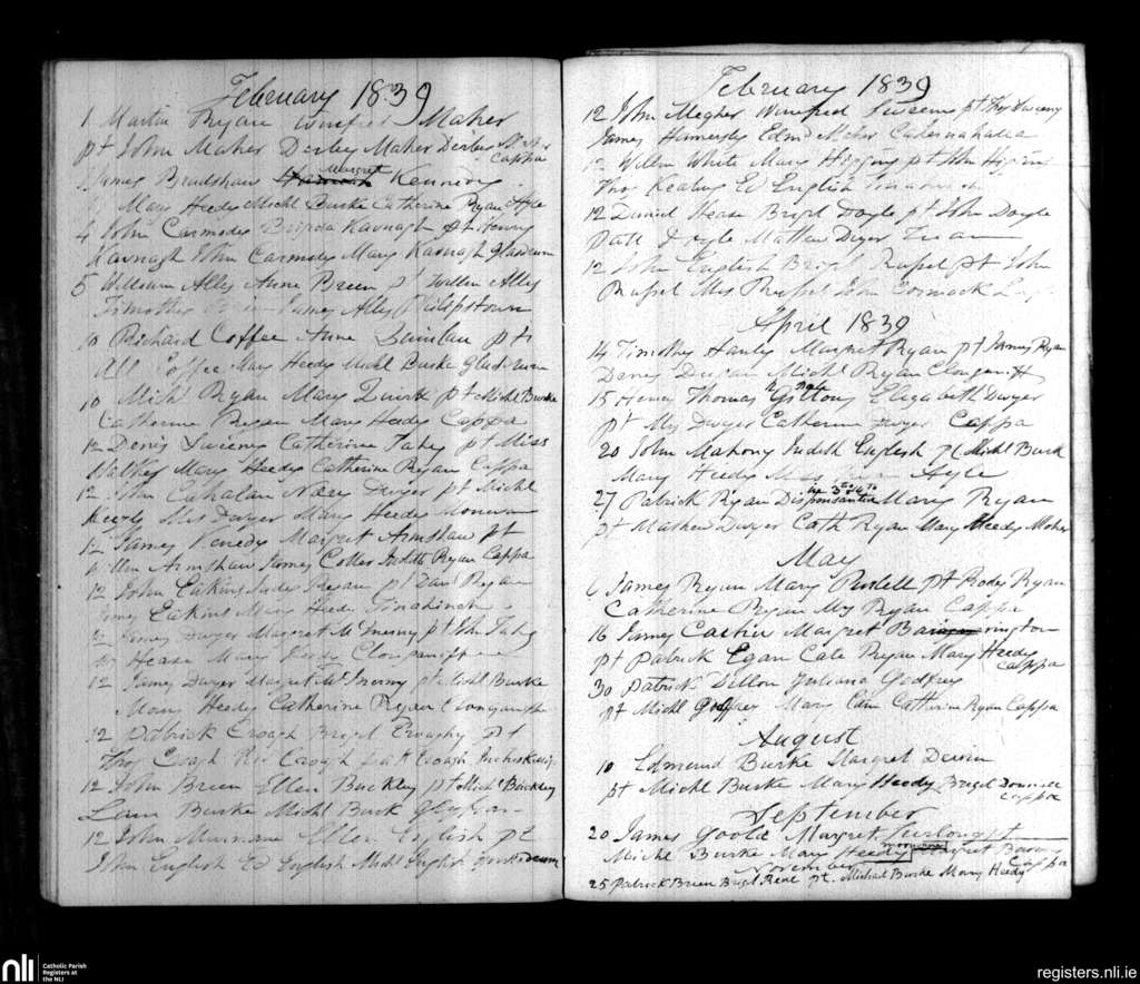 Cappawhite; County of Tipperary; Diocese of Cashel and Emly. Marriages, Feb. 1839 to Nov. 1839