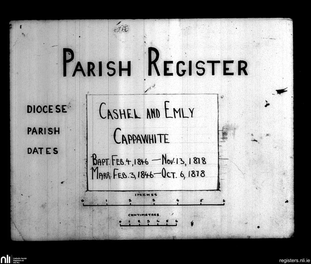 Cappawhite; County of Tipperary; Diocese of Cashel and Emly. Baptisms, Marriages