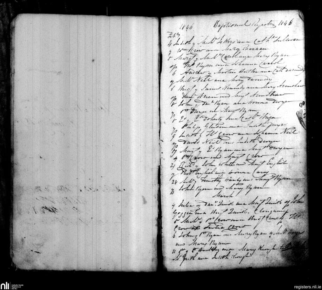 Cappawhite; County of Tipperary; Diocese of Cashel and Emly. Baptisms, Feb. 1846 to Mar. 1846