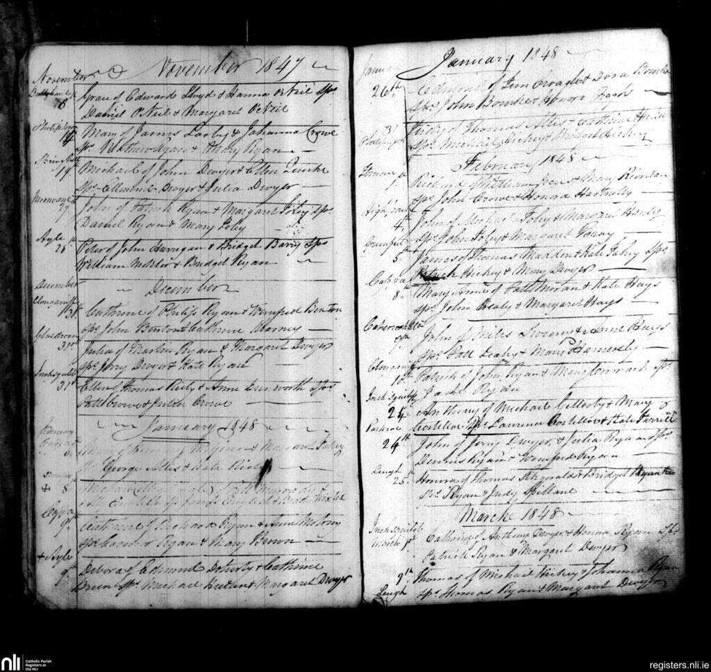 Cappawhite; County of Tipperary; Diocese of Cashel and Emly. Baptisms, Nov. 1847 to Mar. 1848