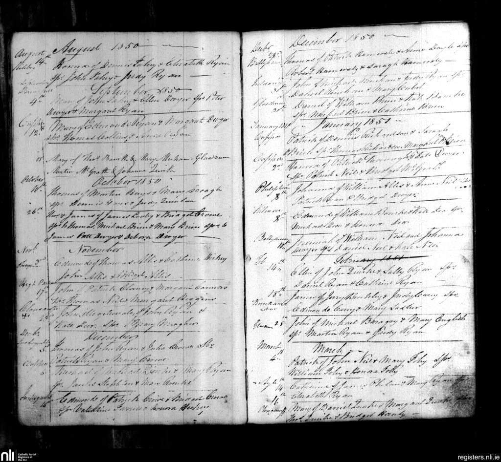 Cappawhite; County of Tipperary; Diocese of Cashel and Emly. Baptisms, Aug. 1850 to Mar. 1851